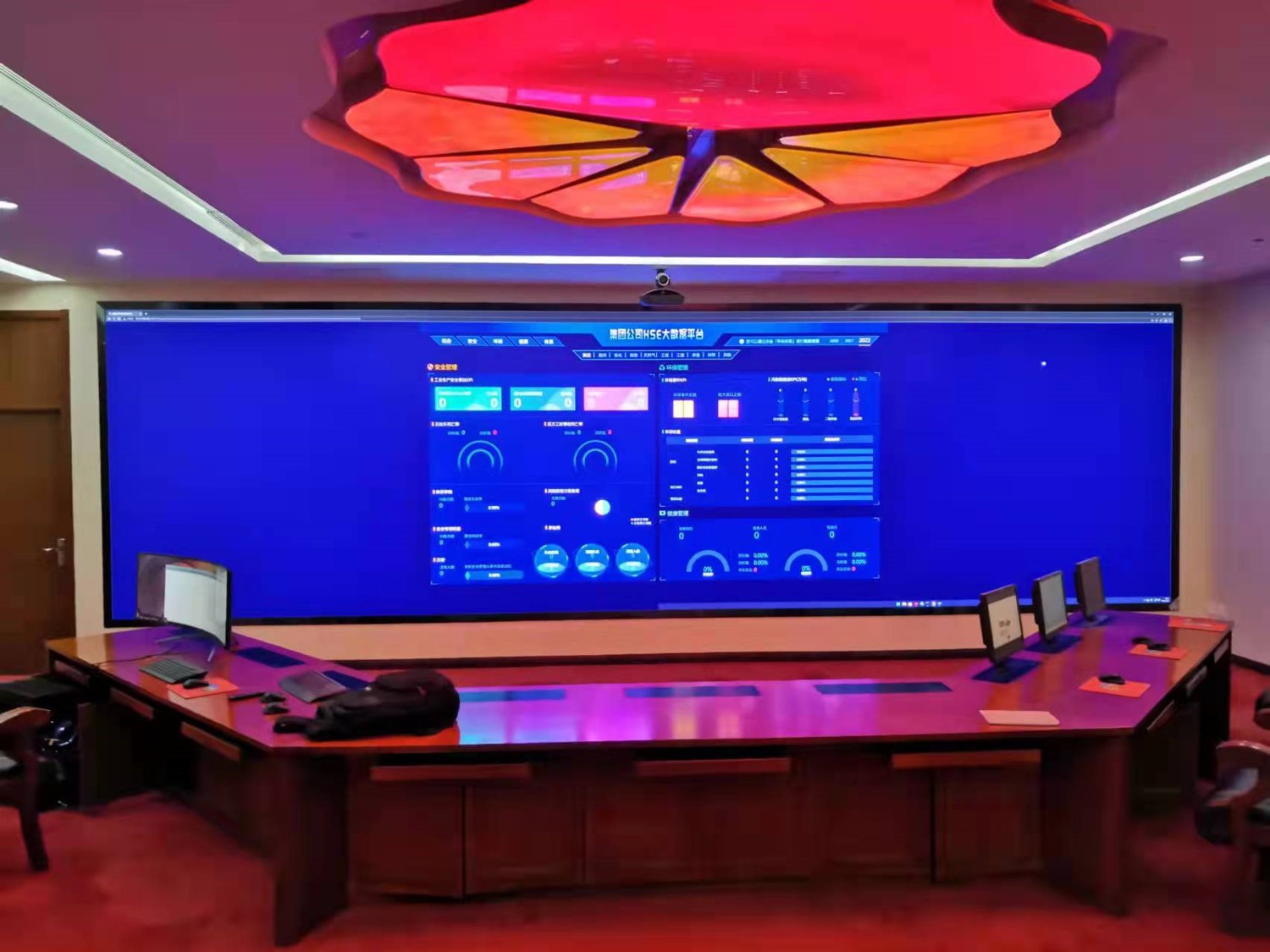中國石油集團安全環(huán)保技術研究院1層視頻會議室創(chuàng)新型的運用0.93mmLED顯示屏,不僅滿足單位召開視頻會議室使用,同時可用于超高分圖像的展示工具,對研究院研發(fā)團隊成果展示、實驗過程分析提供保障。同時對現(xiàn)有視頻會議功能進行升級,由原來模擬、標清視頻會議形式升級為高清、4K會議,